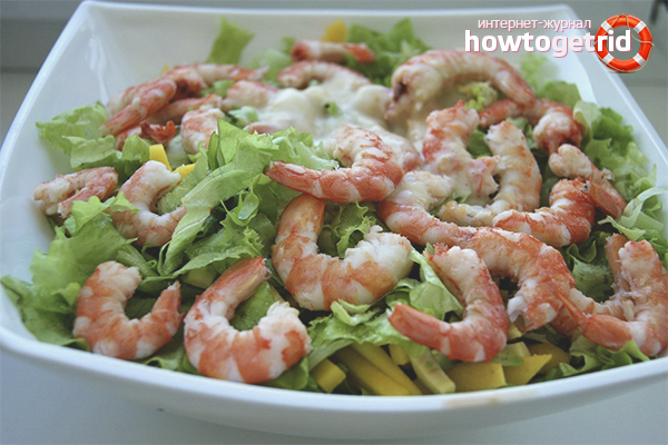 Les fruits de mer, en particulier, les crevettes sont très populaires, car ils sont considérés comme un plat faible en calories. Ils comprennent des protéines et du calcium, en règle générale, les crevettes sont livrées dans les rayons des magasins sous forme congelée. Dans la plupart des cas, ils sont pré-bouillis en usine, ce qui donne au produit une teinte rose délicate. Les crevettes sont le plat principal, en cours de préparation, elles sont complétées par de la sauce soja, du jus de citron, des assaisonnements et des épices. Il est nécessaire de respecter les proportions afin de ne pas interrompre accidentellement le goût.