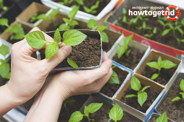 Important: Certains résidents d'été estiment que le poivre a besoin de dioxyde de carbone pour accélérer la croissance des semis. Dans de tels cas, les pots de graines sont placés au fond d'un grand sac, expiré plusieurs fois vers l'intérieur et attachés hermétiquement.
