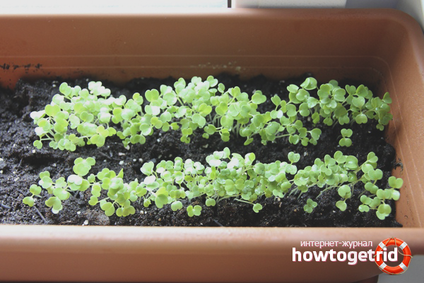 Il est recommandé d'éclaircir les semis âgés de 8 à 10 jours en enlevant les plantes faibles et rabougries. Ils peuvent être ajoutés aux salades ou aux soupes, en élaguant les racines et en lavant soigneusement les feuilles. Les échantillons restants sont régulièrement arrosés d'une seringue, d'une cuillère à café ou d'un spray. Les buissons cultivés tolèrent normalement +10 degrés et +25.