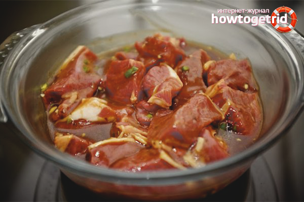 La marinade ne convient pas au poulet, elle convient mieux au porc, au bœuf et à l'agneau. Le résultat final dépasse toutes les attentes: la viande devient tendre, se mâche facilement, a une finale douce.