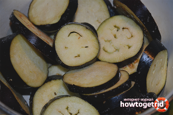 - Après toutes les manipulations, les légumes sont légèrement plus petits et s'assombrissent. Il s'agit d'un phénomène normal. Pas de botulisme ici et ça ne sent pas. Et puis nous avons vu un tel "lettré". On prétend qu'il s'agit d'une détérioration du début du produit.Certes, ils oublient que le botulisme est un péché de nourriture en conserve, pas de gel. Soit dit en passant, les aubergines fraîchement cuites en automne ne brillent pas non plus avec la blancheur. Ils acquièrent une teinte brune noble.