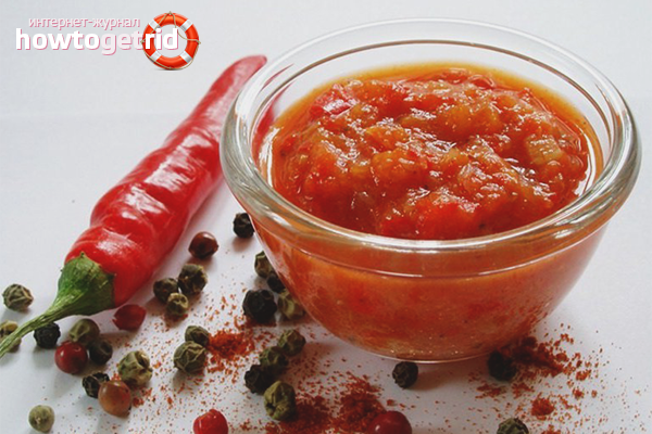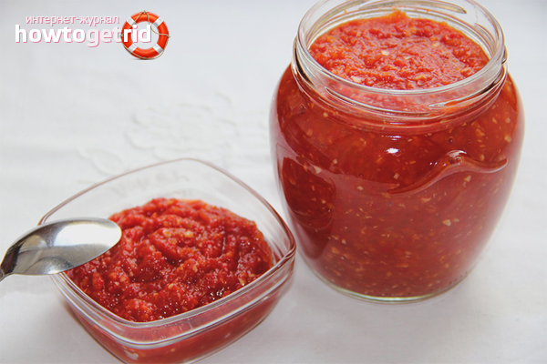 - La technologie de cuisson classique ne nécessite pas de cuisson. Gardez adjika au réfrigérateur pendant plus de 5 mois. Choisissez un récipient en verre ou en plastique avec un couvercle hermétique pour le vieillissement.