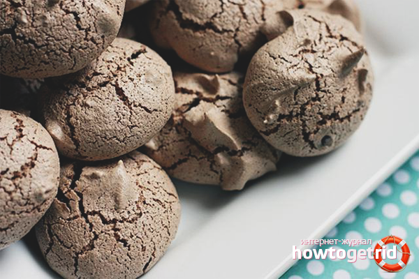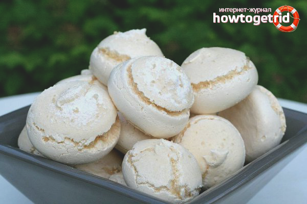 - Après avoir placé la masse d'air sur du papier sulfurisé ou du papier d'aluminium, envoyer la casserole dans un four préchauffé à 160 degrés. Réduisez immédiatement le feu à 130-140 degrés, sinon les meringues se gripperont avec une croûte, mais ne cuireont pas à l'intérieur. Le temps de cuisson est d'un quart d'heure, pas plus.