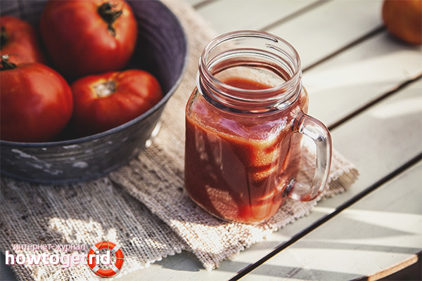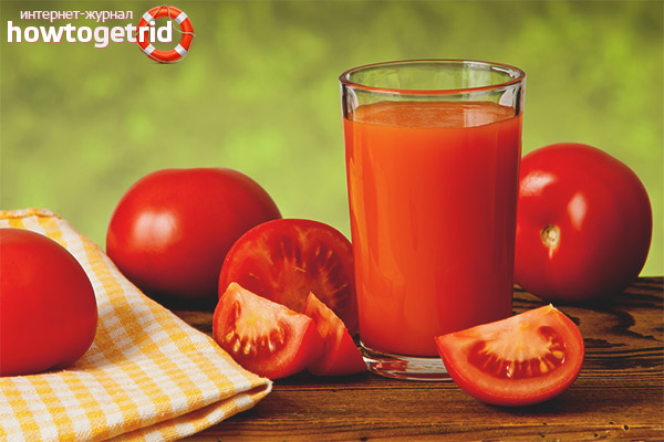 - Les experts disent que le jus de tomate est apprécié pour sa liste de substances minérales et vitaminiques. Il est introduit dans l'alimentation par absolument toutes les catégories de personnes, indépendamment de l'âge et du sexe, s'il n'y a pas d'interdiction de consommation. La question de l'opportunité de prendre un verre lors de la lutte contre le surpoids est controversée, car un tel produit est à la fois utile et nocif. Il provoque des ballonnements sévères.