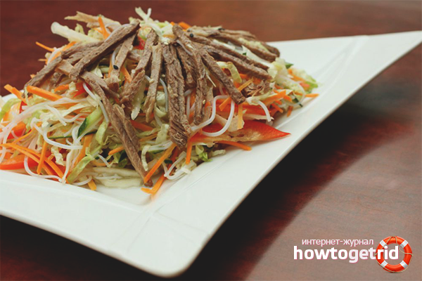 - Faire bouillir ou cuire à la vapeur selon les instructions ci-dessus. Envoyez les nouilles dans un bol, ajoutez le poivron, souvenez-vous avec vos mains pour que le jus sorte. Passer l'ail dans une presse, hacher l'aneth et placer les ingrédients dans un récipient avec funchose. Partez un quart d'heure.