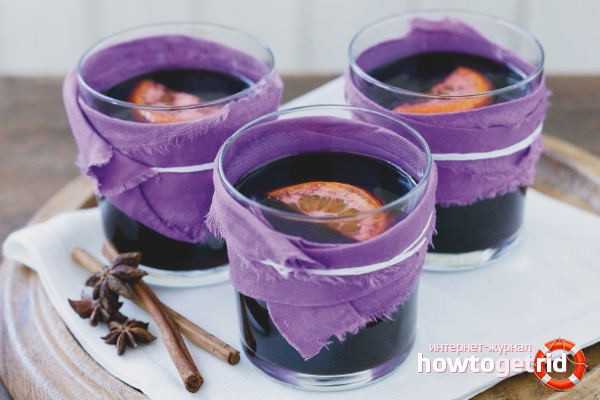 - Vous pouvez également faire cuire du vin chaud sans alcool, auquel cas il suffit de remplacer le vin par du jus de raisin. La boisson est préparée selon la technologie ci-dessus, les temps d'exposition et de cuisson restent inchangés.