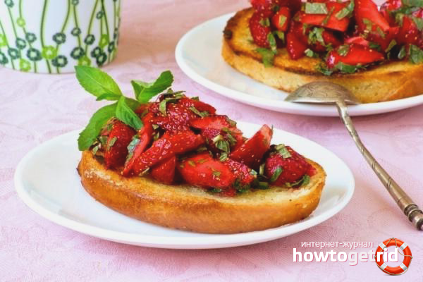 - Préparez un récipient pour la cuisson des aliments au four. Mettez-y des croûtons déjà frits, garnissez de sauce aux fraises. Envoyer le formulaire au four pendant 5-7 minutes, cuire à 160 degrés. Laisser refroidir avant de servir.