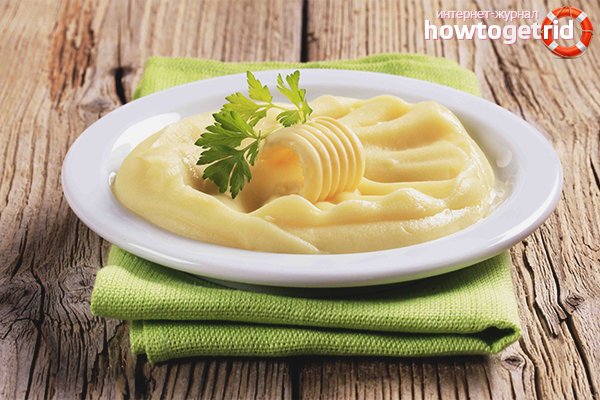 - Lorsque le légume est bouilli, ne videz pas toute l'eau. Laissez 100-150 ml., Ensuite, vous mélangez le liquide avec du lait. N'économisez pas sur le beurre, avec sa purée de pommes de terre se révélera tendre et savoureuse.
