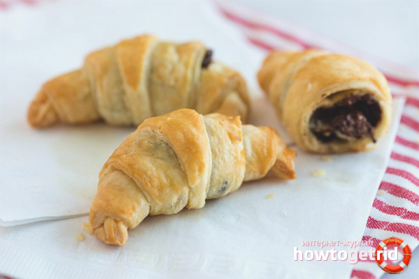 - Il est nécessaire de préparer une pâte feuilletée pour des bagels sans problème. Sinon, le produit peut ne pas fonctionner en raison de problèmes externes. Suivez les directives pratiques et ne vous précipitez nulle part. Gardez à l'esprit que lors de la préparation de pâte feuilletée, la température de la pièce doit être basse. Essayez d'utiliser une garniture sèche pour les croissants afin de ne pas alourdir la pâte.