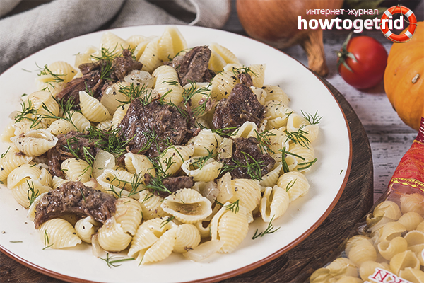 Si la maison a de grandes «coquilles» ou «tubes», ils se révéleront être une cocotte satisfaisante. Pour 1 boîte, les ragoûts prennent 500 à 600 g de pâtes. La préférence est donnée aux options du blé dur, car elles tiennent mieux leur forme.