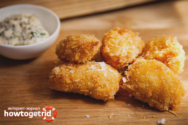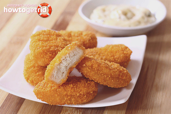 - Pour réduire la durée de la friture, battez un peu les morceaux de filet cuits. Pour la saturation des couleurs, ajoutez du paprika moulu, du poivre noir et du sel à la panure et à la pâte. Si vous le souhaitez, des pépites peuvent être faites au four à 200 degrés.