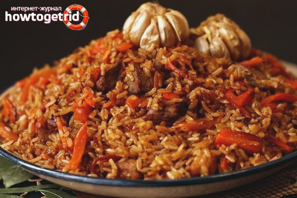 Le pilaf est considéré comme un plat coloré de la cuisine orientale. Il est aimé pour son goût épicé exquis et sa satiété. De nombreuses femmes au foyer préfèrent faire cuire le pilaf à partir de porc, mais l'utilisation d'agneau, de poulet, de veau et même de poisson est autorisée. Souvent, des champignons sont ajoutés au plat, au final, il s'avère plus saturé. Il existe de nombreux secrets qui aident à faire du riz en miettes. Le résultat est un délicieux pilaf "grain à grain". Considérez les recettes de base dans l'ordre, mettez en évidence l'essentiel.
