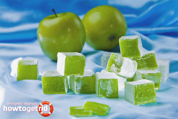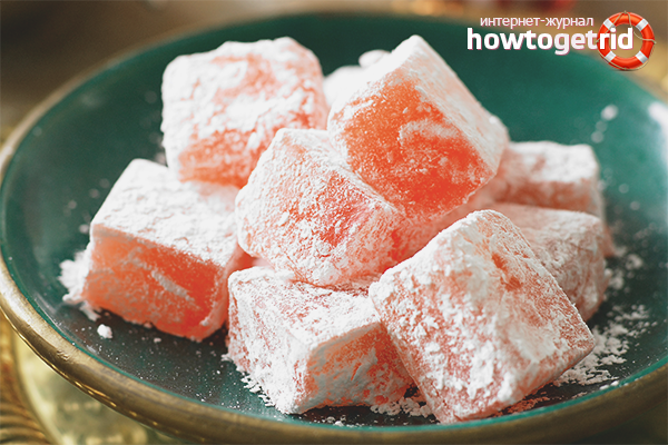 - Laissez refroidir le futur délice turc, puis transférez la composition dans les moules appropriés. Conserver au réfrigérateur jusqu'à durcissement, couper en tranches et saupoudrer chaque tranche de sucre en poudre.