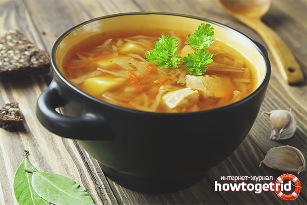 Le régime alimentaire d'un adulte et d'un enfant implique la consommation de premiers plats alimentaires. Si à l'étranger les soupes et les bortsch hésitent à manger, alors nos compatriotes tuent la soupe au chou, comme on dit, pour les deux joues. Une telle demande généralisée encourage les femmes au foyer à rechercher de plus en plus de nouvelles recettes afin de surprendre les ménages. La soupe au chou est faite de chou frais avec l'ajout d'ingrédients qui peuvent souligner la dignité du plat. Considérez les recettes les plus délicieuses par ordre de priorité.