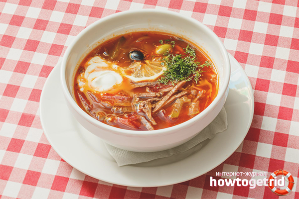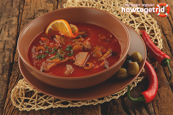 Solyanka décore parfaitement la table de tous les jours. Si vous en avez assez de la monotonie, pensez à des recettes de soupe à base de champignons, viande, légumes, poisson, abats, saucisses. Variez la quantité d'ingrédients listés à votre convenance. Ajoutez vos assaisonnements préférés.