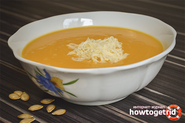 - Hachez ensuite la citrouille et la carotte, ajoutez à la masse totale. Versez les ingrédients dans le bouillon. Cuire au moins 20 minutes. Si nécessaire, salez la composition.