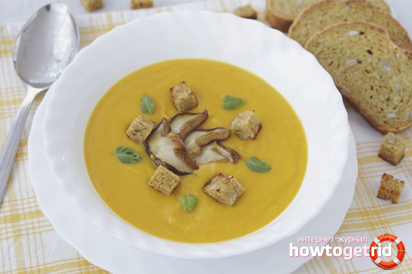 - Le mélange fini doit être passé à travers un mélangeur. La purée obtenue est portée à ébullition à plusieurs reprises. Ajoutez de la purée de soupe à votre goût, ajoutez de la viande ou des herbes fraîches. La soupe de carême pour un régime est préparée à base d'un bouillon de légumes avec de l'huile végétale.
