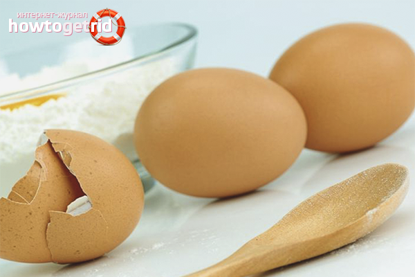 La base de la recette, comme dans le cas précédent, est la coquille d'oeuf et l'eau, cependant, le dosage devient plus élevé que d'habitude. Les adultes et les enfants de plus de 15 ans doivent mélanger une cuillère à café de poudre dans un verre d'eau trois fois par jour et la boire immédiatement. Il est recommandé aux jeunes enfants de réduire la quantité d'une telle solution à 2 fois par jour.