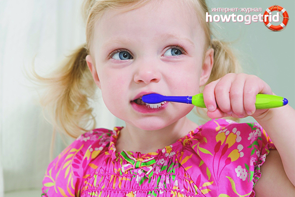 - L'enfant doit se brosser les dents le matin et le soir, et après avoir mangé, il est nécessaire de rincer la cavité buccale avec de l'eau propre. Le liquide lave les débris alimentaires et protège l'émail de la destruction.