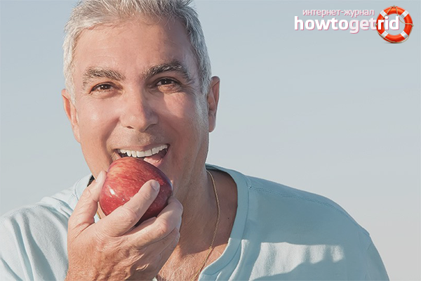 En train de manger, une personne avec une prothèse peut rencontrer plusieurs problèmes. La toute première est la peur de mâcher de la nourriture. Beaucoup essaient de passer aux soupes, à la purée de pommes de terre et aux bouillons, ce qui fait une grosse erreur. Le processus d'adaptation est le développement des compétences de mastication dans la prothèse. Pour surmonter cet obstacle, vous devez commencer à manger des aliments solides, mais progressivement. Coupez des tranches de pommes, de carottes ou de concombres dans une assiette, prenez une tranche et commencez à bien mâcher - lentement, sans précipitation nulle part. Cela vous apprendra à mâcher soigneusement afin de ne pas endommager les gencives.