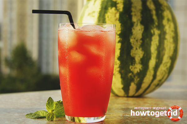 Les propriétés bénéfiques de la pastèque sont concentrées non seulement dans sa pulpe. Si vous avez un mal de tête sévère, attachez une épaisse croûte de pastèque à vos tempes et la douleur disparaîtra en quelques minutes. Une décoction de zeste de pastèque est très utile pour la colite et les maladies rénales. Les os de pastèque sont activement utilisés dans le traitement - des médicaments sont fabriqués à partir d'eux qui peuvent abaisser la température, arrêter le sang et supprimer l'inflammation. La pulpe et les os de la pastèque sont utilisés efficacement et universellement en cosmétologie - pour renforcer les cheveux et nettoyer la peau. Et pour rendre le médicament non seulement utile, mais aussi savoureux, vous devez préparer un jus rafraîchissant de pastèque.