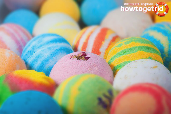 Les bombes de bain sont de petites boules qui, au contact de l'eau, commencent à siffler et à bouillonner. Il s'avère une sorte d'effet jacuzzi. De plus, les bombes peuvent changer la couleur de l'eau, créer de la mousse, remplir l'air d'arômes agréables. Selon les ingrédients, des bombes peuvent être fabriquées pour adoucir et hydrater la peau.