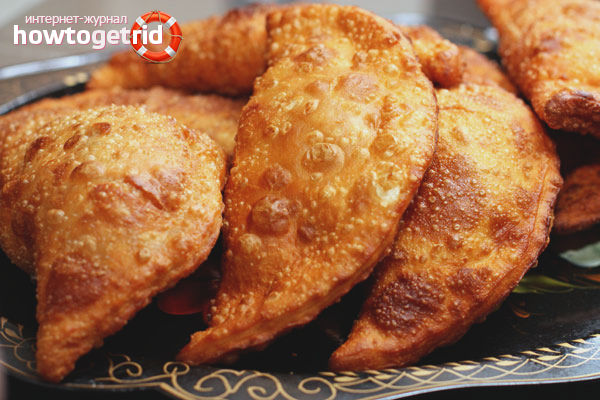 - Pour évaluer la température de l'huile, jetez un petit morceau de pâte dans la composition préchauffée avant de faire frire le cheburek. S'il apparaît, envoyez les tartes après.