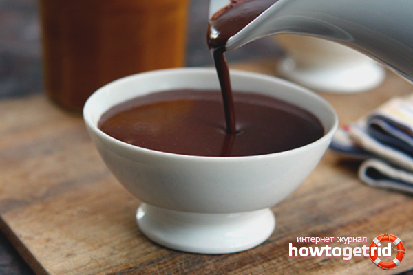 - Retirez le liquide du brûleur, ajoutez 50 gr. miel liquide, 4 ml. essence de vanille, 245 gr. chocolat râpé, 1 pincée de sel. Versez 25 grammes pour l'épaissir. amidon de maïs, uniformiser la masse.
