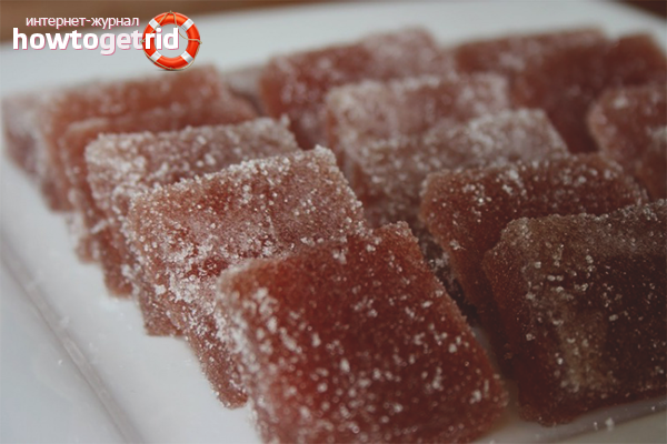 - Faire cuire la masse de marmelade pendant environ 5 minutes.Verser ensuite dans un récipient préalablement préparé, laisser refroidir. Laissez ensuite la composition durcir complètement en l'envoyant au réfrigérateur.