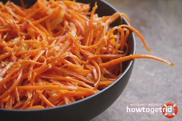 - Il est important de se souvenir pour toujours que les carottes sont préparées avec de l'huile chaude, mais en aucun cas bouillie. Si vous surexposez le composant au feu, il commencera à devenir amer et perdra toutes ses propriétés utiles.
