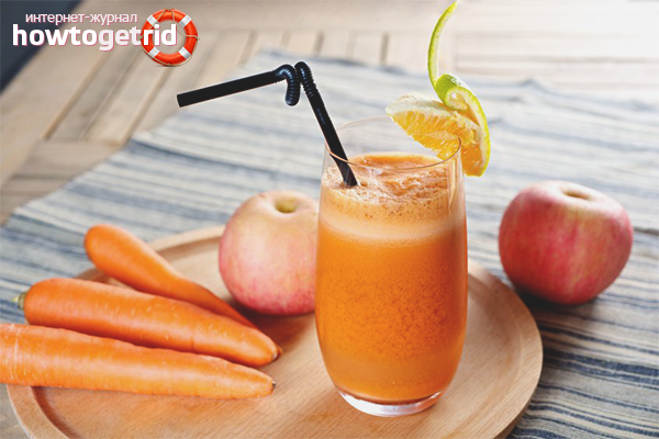- La consommation fréquente et dosée de jus de carotte rend le système immunitaire insensible à l'ingestion d'agents pathogènes. Par conséquent, il est recommandé d'utiliser le médicament pendant la période de grippe et de rhume.