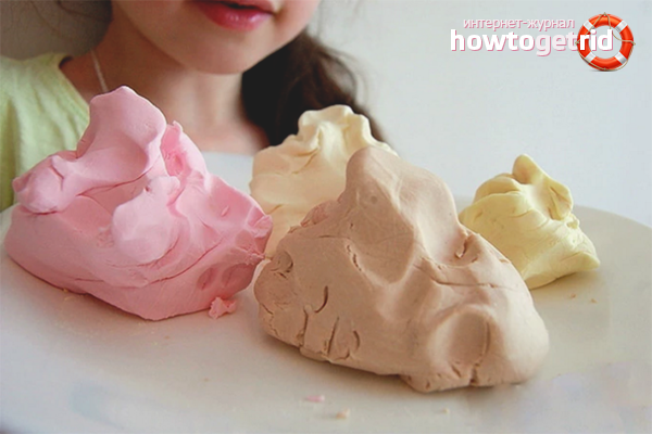 - Il n'y a pas de colorants, composants chimiques, composés complexes et matériaux nocifs dans la pâte à modeler maison. Pour cette raison, la composition est considérée comme hypoallergénique, ce qui est un avantage indiscutable.