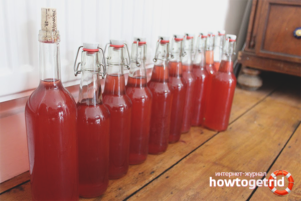- Prenez une bouteille de verre de cinq litres, rincez-la à l'eau chaude, faites bouillir et séchez soigneusement. Versez-y le mélange. Dans les cas où il n'y a pas de capacité nécessaire, utilisez 2 bidons de trois litres, en renversant la composition en quantités égales sur eux.