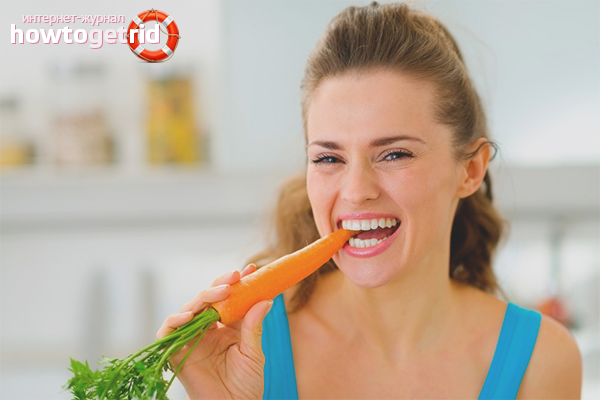 Il est conseillé aux patients ayant de mauvaises habitudes de manger au moins une tige de carotte ou de céleri par jour. Les légumes durs massent non seulement les tissus mous, rétablissent la circulation sanguine, mais éliminent également la plaque. Enlevez les taches brunes causées par le tabagisme ou l'abus de café. Les propriétés blanchissantes ont: