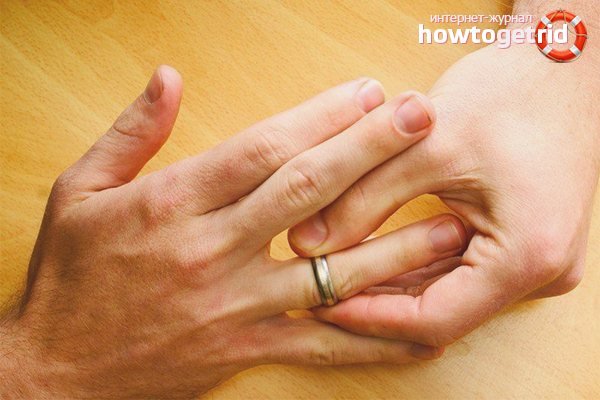 Si une tumeur est trouvée ou s'il est impossible d'enlever l'anneau, beaucoup commencent à se branler brusquement ou essaient de l'enlever plus rapidement du doigt - c'est une grosse erreur. Essayez, lentement et en faisant défiler la bague vers l'avant, poussez-la jusqu'au bout du doigt.