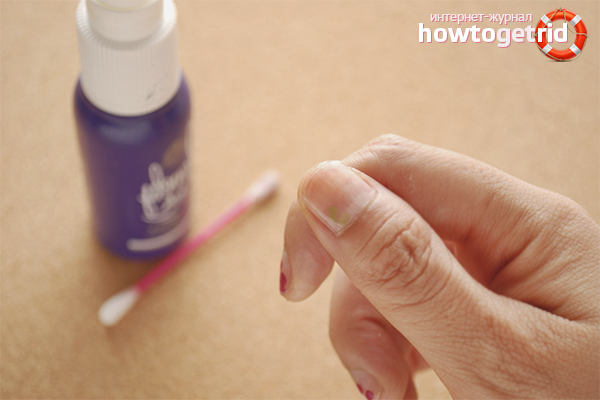 - Le solvant est de l'acétone pure, un diluant d'émaux ou de peintures automobiles, un moyen d'allumage. Prenez une zone bien ventilée, humidifiez l'éponge cosmétique dans le cadre de la composition.