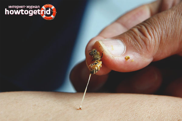 Les guêpes retirent une piqûre des tissus mous, laissant un petit trou dans la peau. La zone mordue devient rouge et saigne légèrement. Si la piqûre est coincée, elle est doucement tapotée avec des clous ou des pincettes et retirée. Vous ne pouvez pas appuyer avec vos doigts sur les tissus endommagés, sinon le gonflement augmentera.