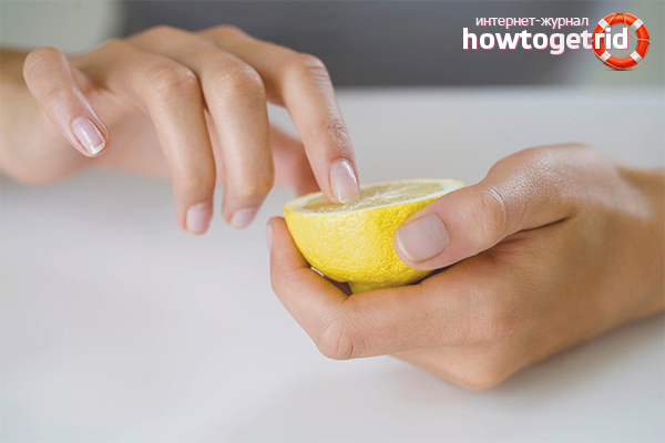Pressez le jus d'agrumes, dans lequel une vinaigrette de gaze est humidifiée. Le produit est remplacé par du vinaigre de table ou de cidre de pomme dilué avec de l'eau. Les compresses de citron apaisent les démangeaisons. Les lotions acétiques aident à brûler et à faire de la fièvre.