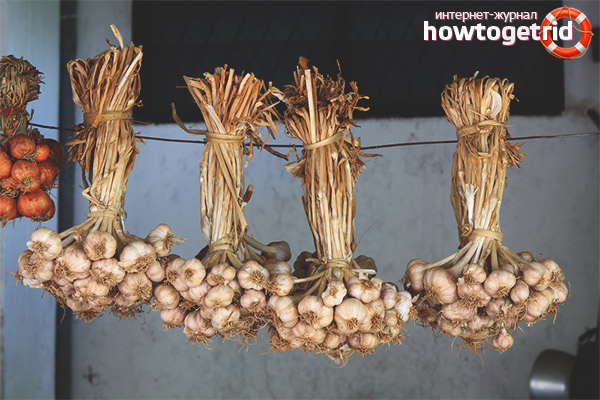 Pour lutter contre les rongeurs, des pièges sont installés. Les murs et les étagères des insectes sont traités avec des agents spéciaux à action dirigée. Si la ventilation n'est pas opérationnelle, cela doit être corrigé. Ensuite, la méthode appropriée est sélectionnée. Par exemple, vous pouvez maintenir le recadrage sous forme d'osier. Autrement dit, les tiges sont enroulées autour de la corde, dans cet état, les têtes d'ail sont suspendues et laissées jusqu'à l'hiver. Si la salle répond à tous les critères, vous apprécierez le légume au printemps et même en été.