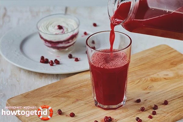 - Les spécimens frais sont utiles, mais également les baies congelées et transformées. Nous parlons de faire cuire des fruits cuits à base d'eux, des jus fraîchement pressés, des boissons aux fruits, des thés, des décoctions avec des infusions, etc. Ils sont pris avec une chaleur extrême, la grippe et d'autres maladies de ce type.