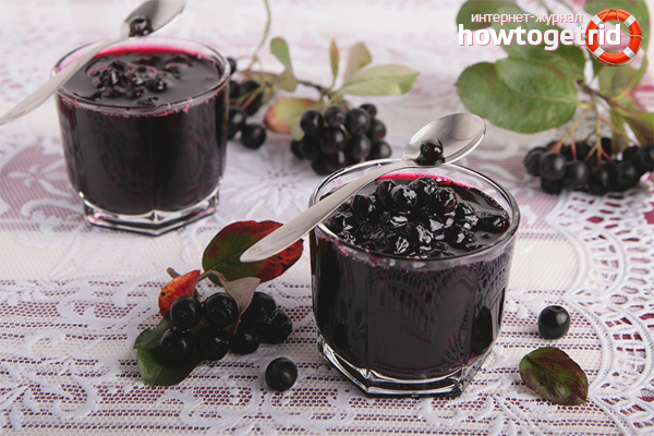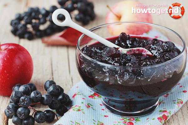 La confiture à base de chokeberry et d'autres composants normalise le contexte psycho-émotionnel, combat l'insomnie, abaisse la pression artérielle, élimine la fatigue et traite les migraines. Une journée est recommandée pour consommer au moins 45 grammes. goodies, en le combinant avec des pâtisseries et des boissons chaudes.