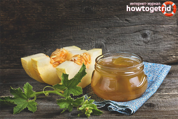 Il y a beaucoup de façons de faire cuire la confiture, mais en tout cas elle s'avère un peu malléable et liquide, il y a des notes de miel dans le goût. Vous pouvez cuisiner à partir de tout type de melon, il peut être mûr ou vice versa - non mûr. Certains utilisent des fruits mûrs et juteux pour faire de la confiture.