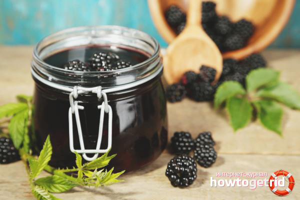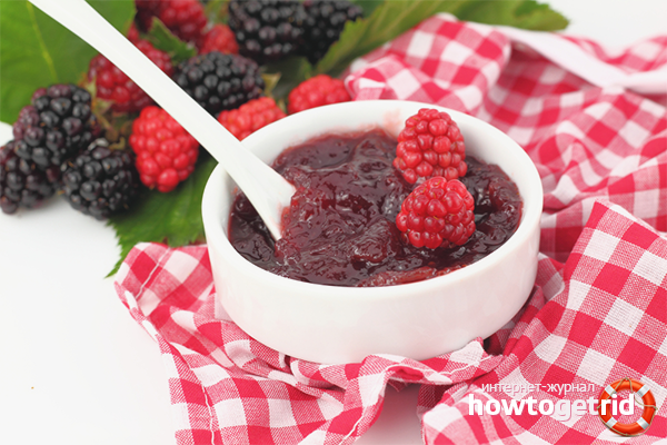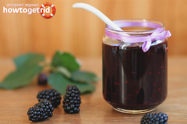 La confiture de mûres se marie bien avec la cuisson, elle peut également être consommée avec du thé. Offrez aux ménages des recettes populaires avec des agrumes, des framboises, des baies de sureau, des fraises, des pommes, des groseilles à maquereau, des bananes. Versez la friandise finie uniquement dans des boîtes stériles, couvrez avec des couvercles en nylon ou en étain.