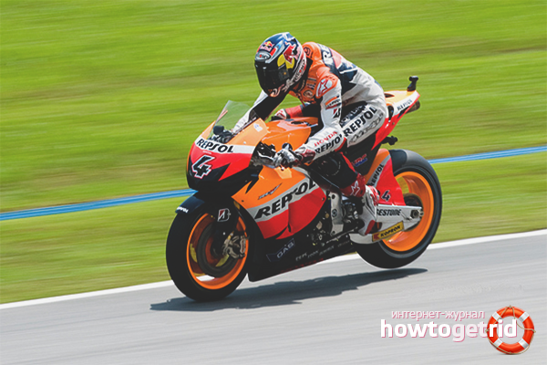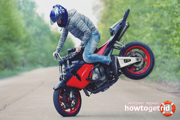 - La principale erreur que font les cyclistes débutants est de serrer complètement la pédale de frein arrière. Dans ce cas, le motocycliste ouvre également l'accélérateur, ce qui conduit à un dérapage de transport. Dans une telle situation, il est presque impossible de niveler la moto, un résultat - une chute.