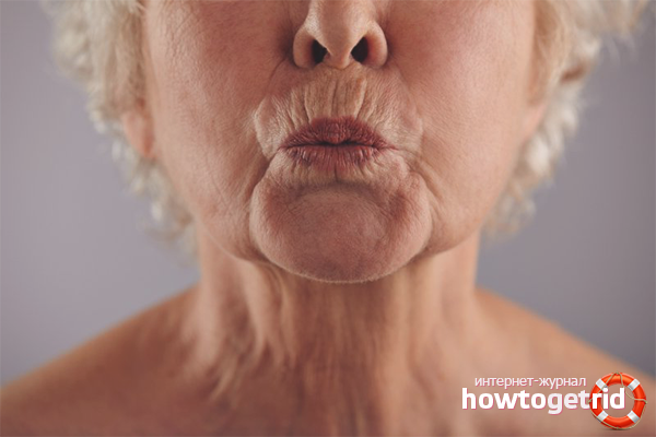 - Si les rides sont situées dans les coins des lèvres et abaissées jusqu'au menton, la cause peut être une violation du pancréas.