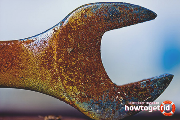 La rouille est éliminée avec de l'acide oxalique. L'outil supporte même de graves dommages, mais émet des fumées toxiques. Travailler avec la substance uniquement dans des zones ventilées.Assurez-vous d'utiliser des combinaisons de protection, des respirateurs, des lunettes spéciales et des gants en caoutchouc.