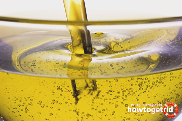 Chauffez trois cuillères à soupe d'huile et appliquez-les sur une tache préalablement nettoyée. Il faut attendre environ 5 minutes pour que la zone soit complètement saturée d'huile.