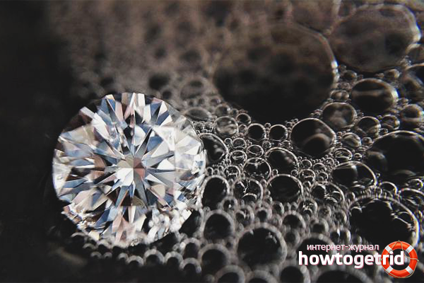- Si les bijoux restent longtemps sans exploitation (le diamant est très trouble), vous devez tremper le produit précieux dans une solution d'eau froide et d'ammoniaque (rapport 10: 1).