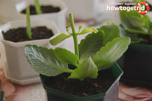 Un palmier peut se révéler tout seul. Si Kalanchoe n'est pas formé, il poussera seul avec une longue tige et laissera tomber les feuilles inférieures. Afin d'éviter que cela ne se produise, pincez tous les sommets des pousses. Ce sera d'abord la tige centrale, puis seulement les beaux-fils.