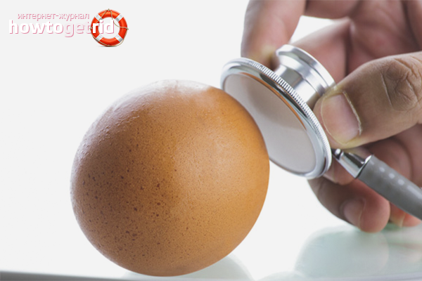 Quatrième voie: aide à vérifier non seulement la fraîcheur du produit, mais aussi l'audition. Entre la coquille et le sac de protéines et de jaune, il y a une petite cavité d'air. Plus l'œuf est conservé longtemps, plus cette cavité est grande. Pour vérifier, vous devez porter le produit à votre oreille et le secouer. Aucun son ne sortira d'un œuf frais, mais un rassis flottera. Cette méthode peut être utilisée en magasin et sur le marché.